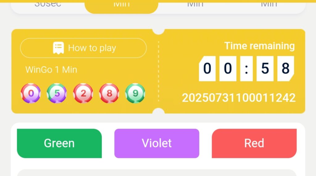 It’s simple! The game has three main colors: Red, Green, and Violet. You predict which color the next number will be. If correct, you can win 2x or more!